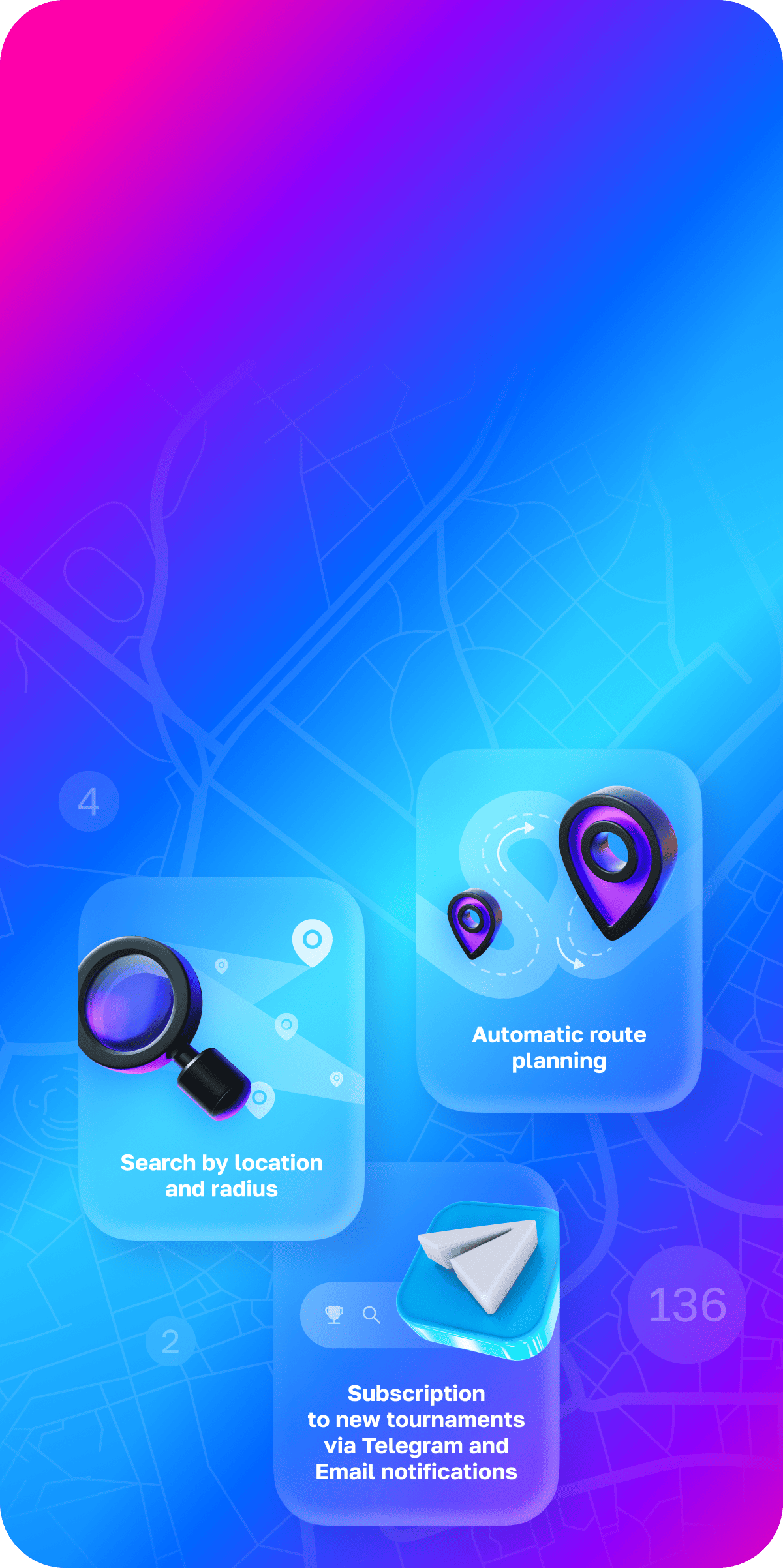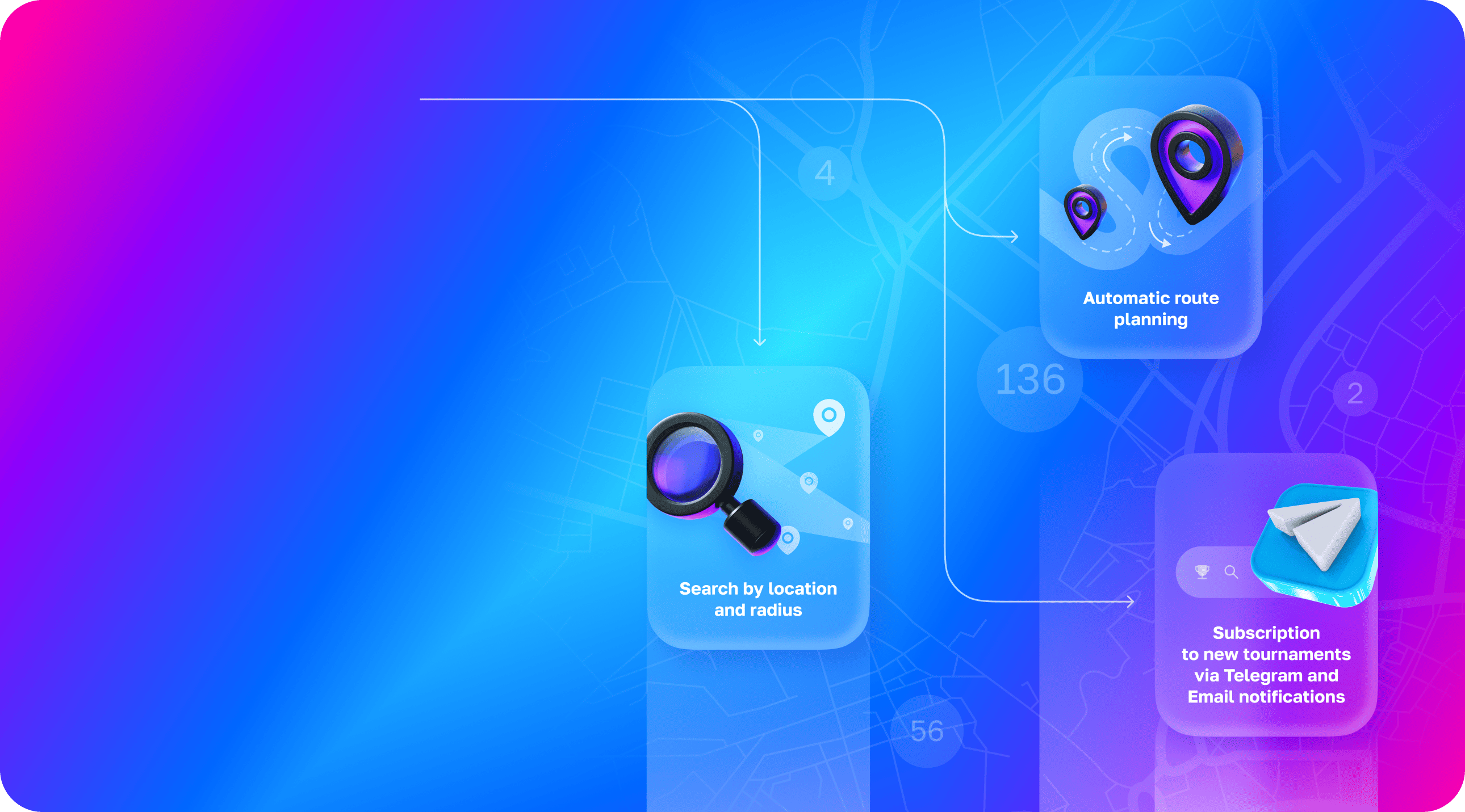 The ability to search tournaments by various filters, including city of the event, openness, and time control, allows you to find the perfect competition.